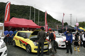また、販売ブースでは、小型HDオンボードビデオカメラ「GoPro」による今年のパイクスピーク・インターナショナル・ヒルクライムの映像や、当日のデモランの映像を上映し、注目を集めていました。さらに、おとなりのベストカーブースと共同でモンスター田嶋のサイン会も行われ、多くのお客様でにぎわいました。